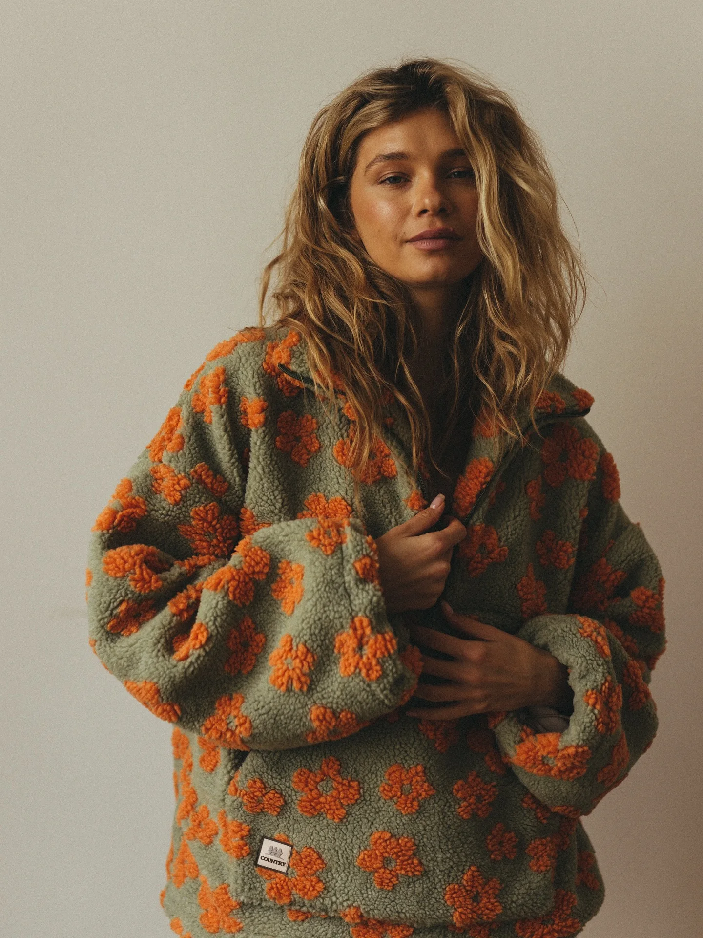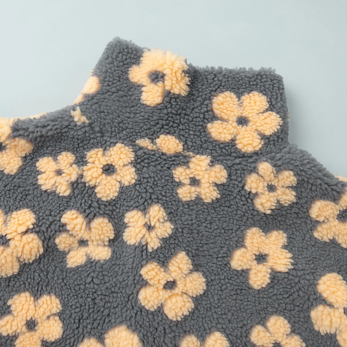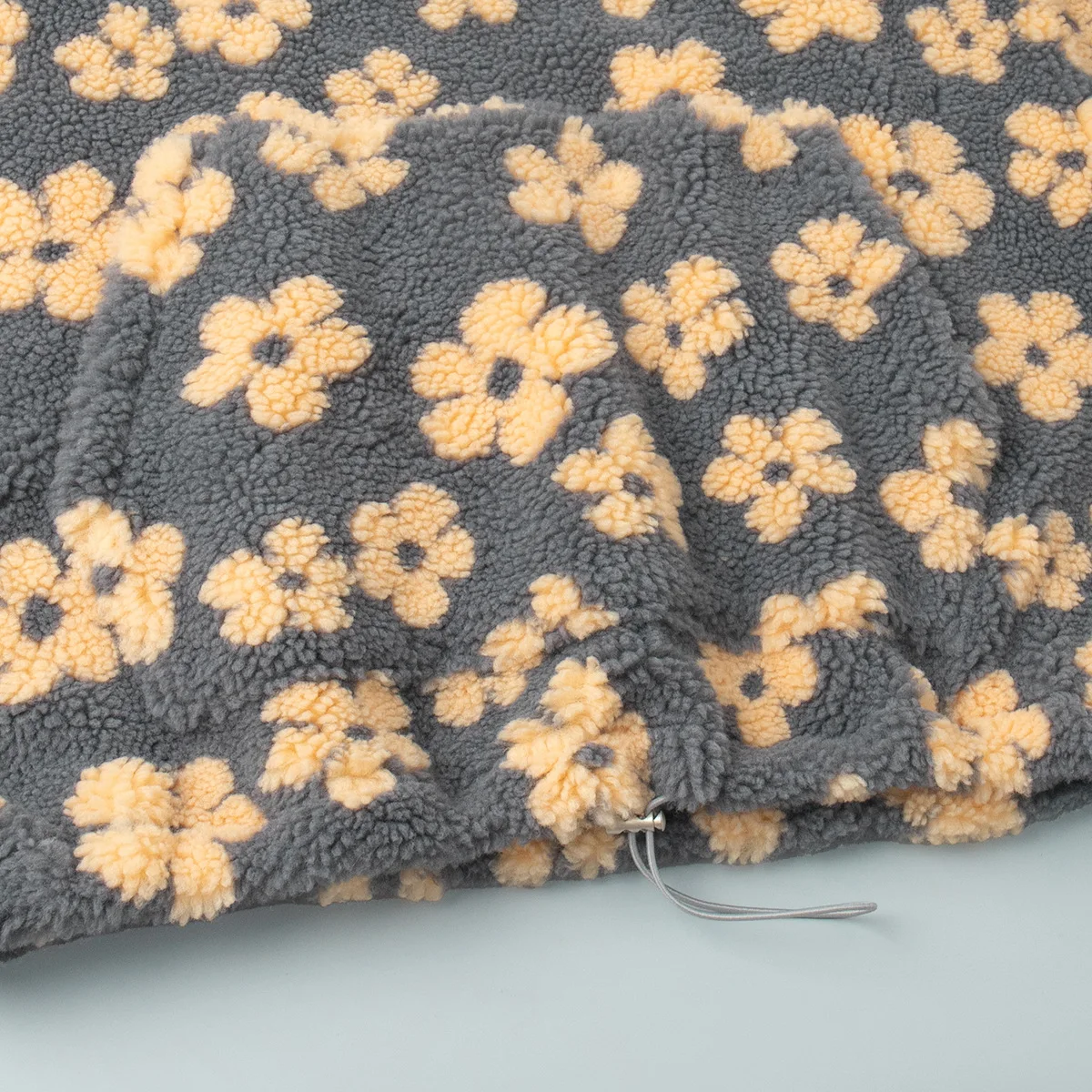 Autumn Faux Lamb Fur Floral Pullover Hoodies Half Zip Style Fit Warm Stylish Sweatshirt 2025 NEW Lady High Street Y2K Outwears